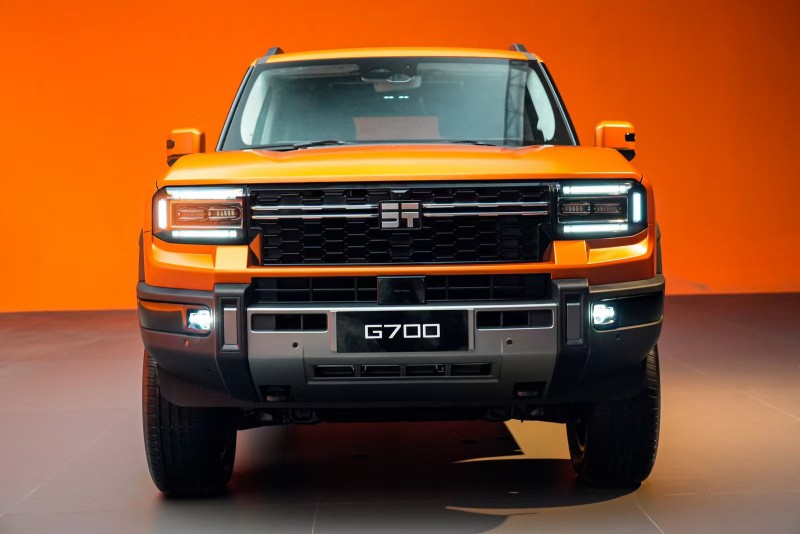 G700的外观设计灵感源自喜马拉雅山脉的巅峰气魄与极致探索精神,将自然史诗与汽车美学结合,形成“刚与柔的和谐之美”。前脸设计以天地为幕,山岳为形,融合自然磅礴与科技震撼,尽显越野气势与豪华视觉张力。冰川塔林点阵前格栅将万年冰川自然奇景凝练于前脸,雕刻出极具辨识度的动态符号,冰之锋芒与机械秩序交织,于静中见势,于形中藏境。