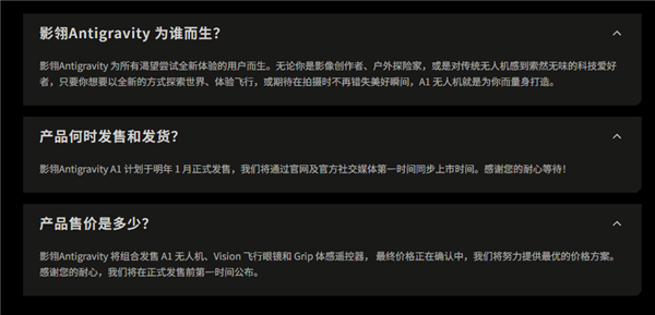 影翎Antigravity A1将于2026年1月正式发售,将组合发售A1无人机、Vision飞行眼镜和Grip体感遥控器,最终价格正在确认中。