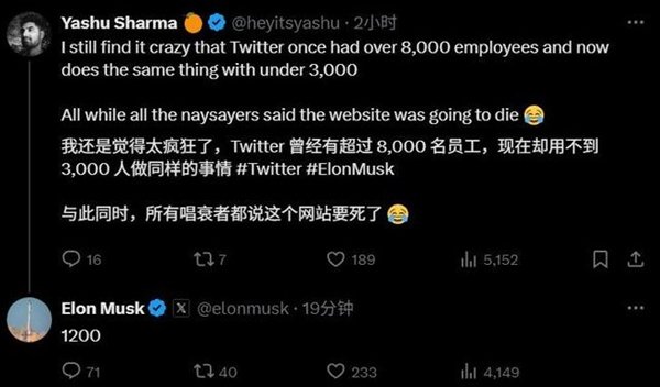 快科技8月15日消息,据媒体报道,一位X用户今日发帖称:“我仍然觉得推特曾经8000多名员工,现在却只有不到3000人,这很疯狂。所有的反对者都说这个网站要完蛋了。”
