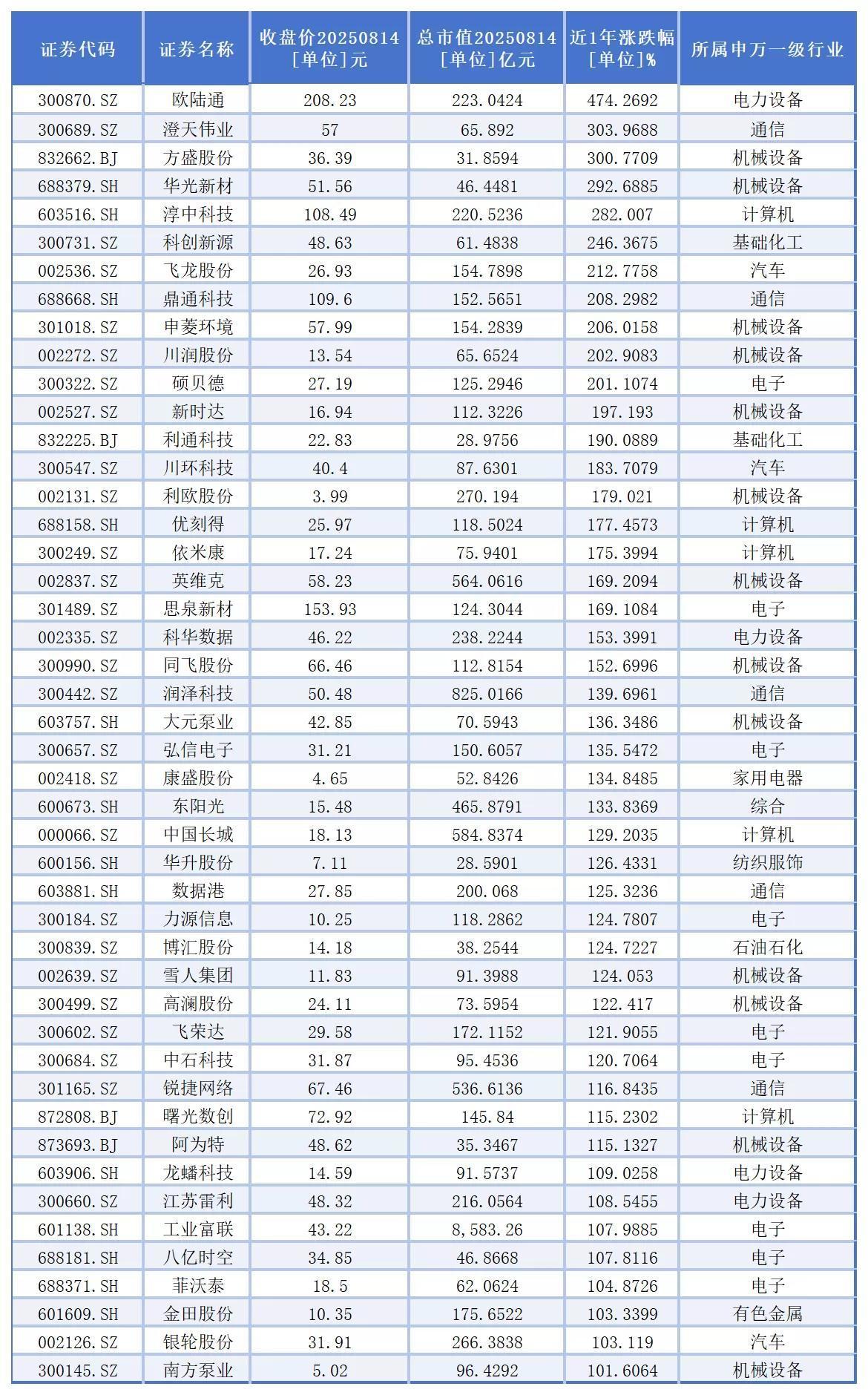 从二级市场表现看,自去年该板块行情启动以来,近一年,已有欧陆通、澄天伟业、方盛股份、华光新材、淳中科技、科创新源、金田股份、银轮股份等46家上市公司股价成功实现**。