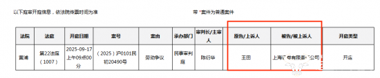 据悉,王田因劳动争议起诉上海证券,案件将于9月17日正式开庭审理。