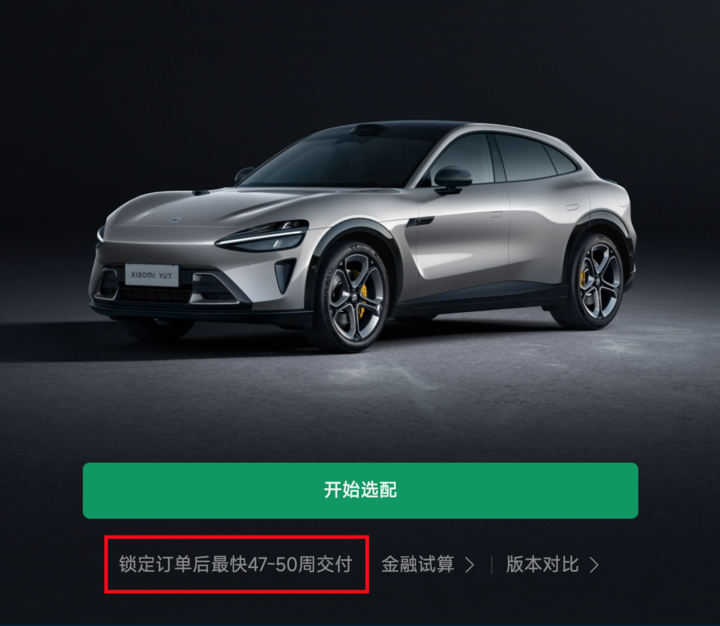 目前,YU7 各版本现在提车周期仍然在 42 周至 59 周左右,也就是如果现在下定,大约需要到明年 6 月份才能提到车,而 SU7 的情况也不乐观,交付周期大概在 34 周至 41 周左右。