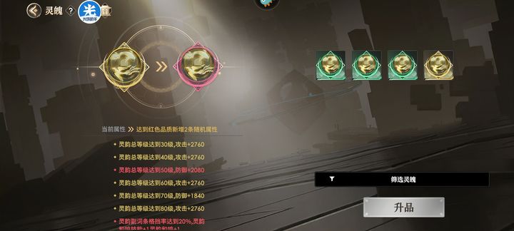 合成公式方面,灵魄按颜色分为绿、蓝、紫、金、红,相同颜色两两融合可提升一个等级。