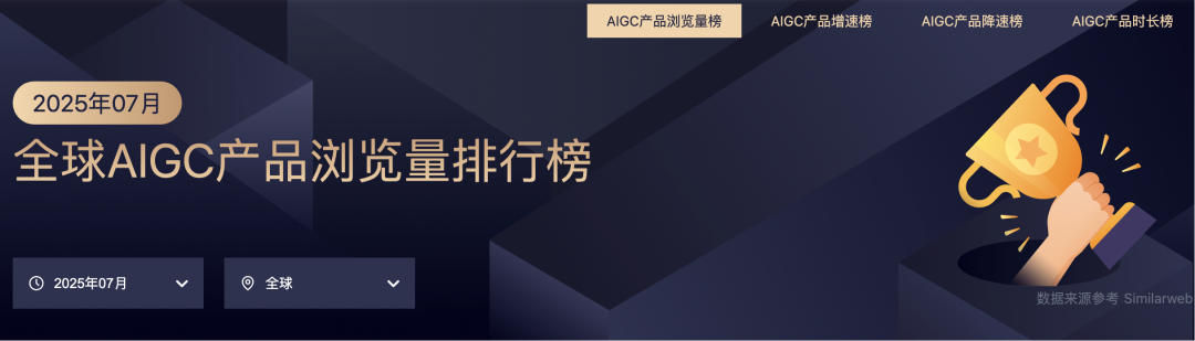 一键追踪全球 AIGC 产品最新流量榜,还可以查看「增速榜」「降速榜」