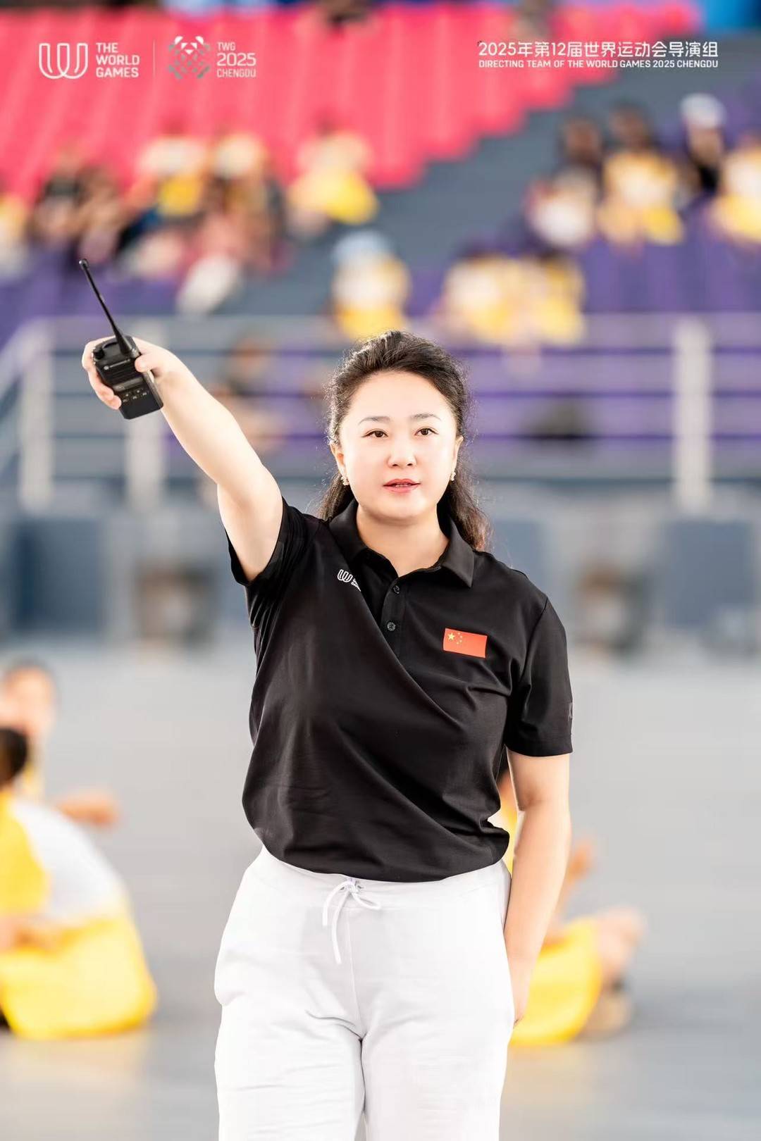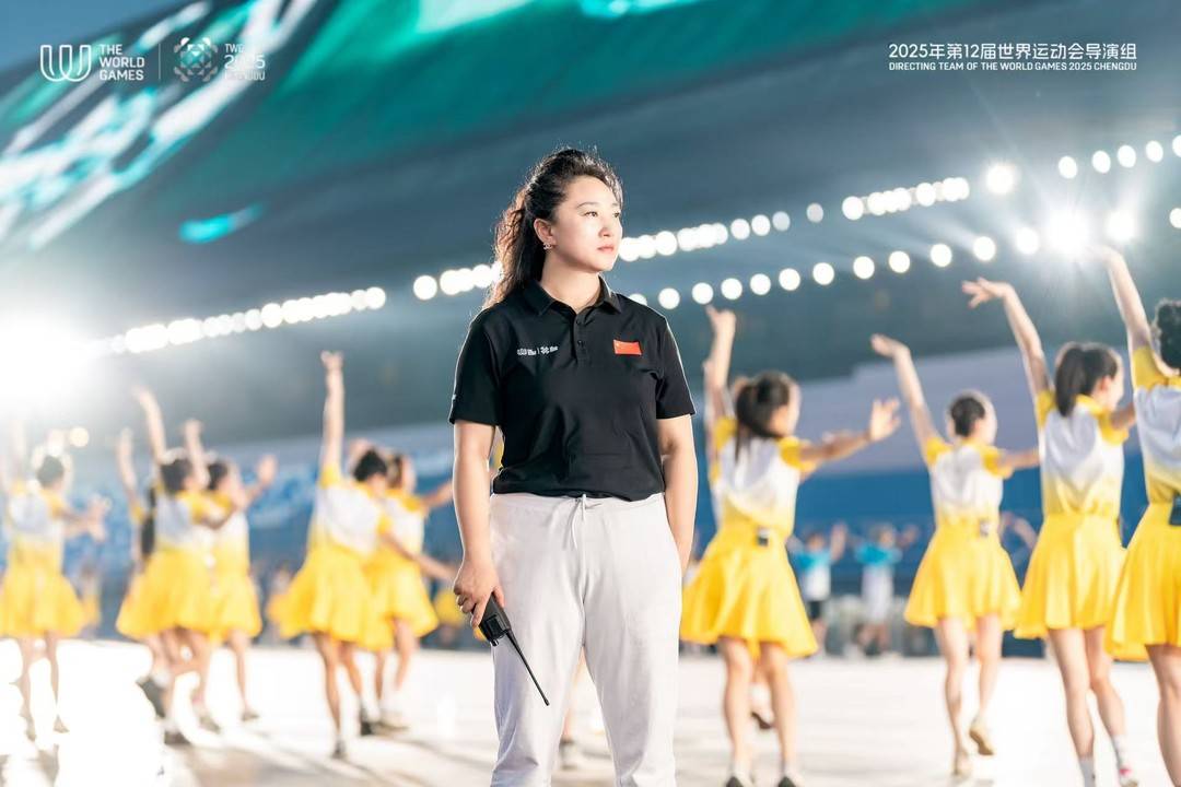 而在莘莘学子的背后,是成都世运会开闭幕式仪式导演谢丹霞。
