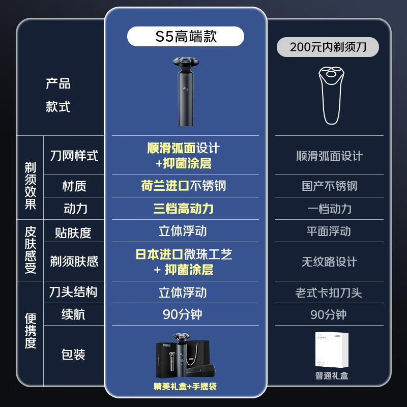 京东京造电动剃须刀礼盒S5,干湿两用高效男士剃须