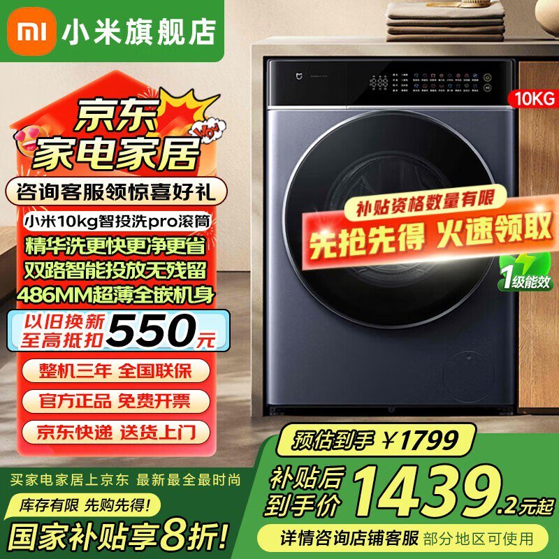 米家小米10公斤智投洗Pro滚筒洗衣机限时特惠!
