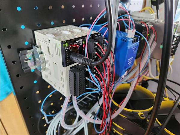他还使用了三菱电机的PLC(MELSEC FX3UC-16MR/D-T)、模拟单元(MELSEC FX3UC-4AD×2)、电流传感器(QNHCK2-16×6)和直流继电器(G7L-2A-B DC24),这些零件共同实现过流保护功能。