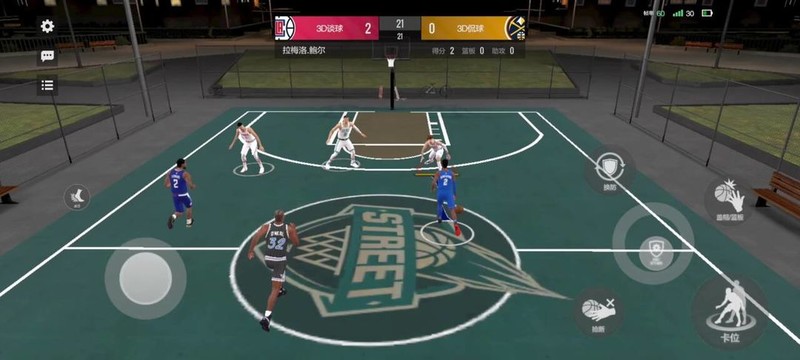 三威胁模式融合街头篮球的自由与王朝玩法的策略深度,每名玩家操控三名球员进行全场对抗,率先取得21分者获胜。