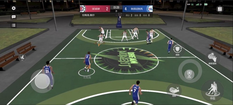梦幻时刻模式仅需五名球员参与一节对决,无需顾虑体能消耗。该模式独设四分线(经测试存在计分异常问题)。由于四分球的存在,即使领先三分,比赛结果仍充满变数,直到最后一刻才见分晓,堪称最具悬念的游戏模式,深受擅长远投玩家的喜爱。