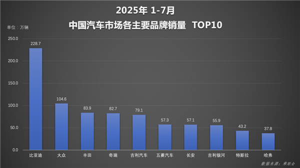 官方数据显示,比亚迪2025年1-7月累计销量达249万辆,同比增长超27%,增速迅猛。