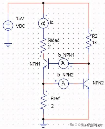 2.使用两个NPN三极管搭建的恒流源。