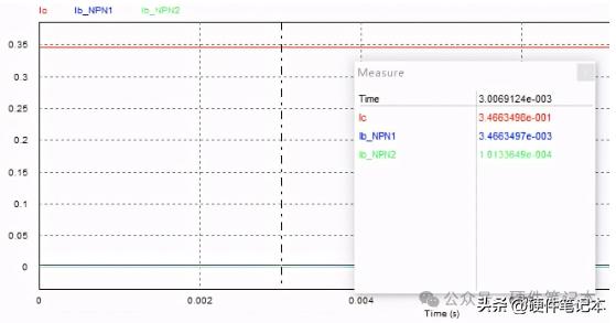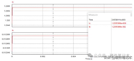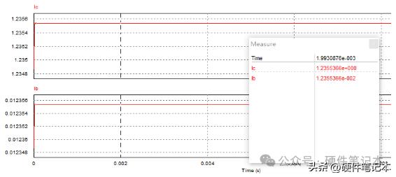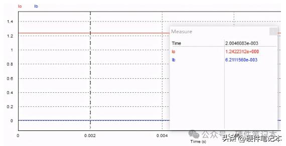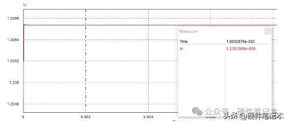 而根据上式计算结果输出电流应该是I = 2.495V / 2Ω = 1.2475A。但实际计算结果却小于该值,这是为什么呢?分析一下可知,流过电阻Rref的电流除了三极管的集电极电流Ic还有基极电流Ib。测量一下Ib,结果如下。
