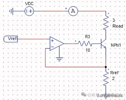运放电路搭建如下,根据运放的“虚短”,可以得知:I = Vref / Rref。
