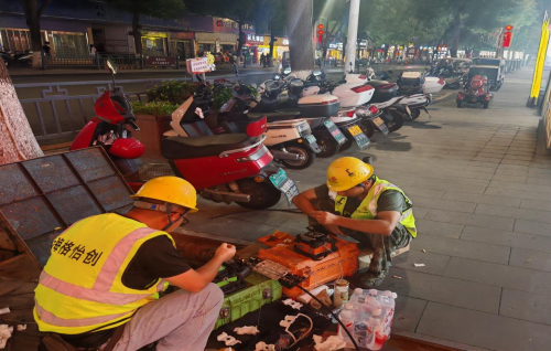 抢修现场的灯光照亮了团队忙碌的身影。熔接光缆、测试信号、分段通电…… 成员们分工协作,汗水浸透工作服却无人停歇。将传统6小时的熔接时间压缩至3小时完成。为确保万无一失,技术人员对每个节点进行反复测试,力求在最短时间内恢复网络,同时提升用户使用体验。