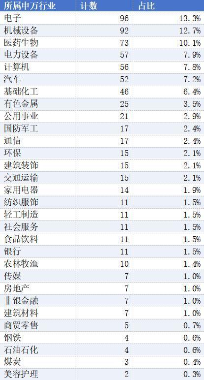 根据同花顺数据,调研涉及行业多达30个。其中,调研活动频次较高的行业前三名分别为电子、机械设备、医药生物,占比分别为13.3%、12.7%、10.1%;次数较少的行业包括美容护理、煤炭、石油石化、钢铁等。