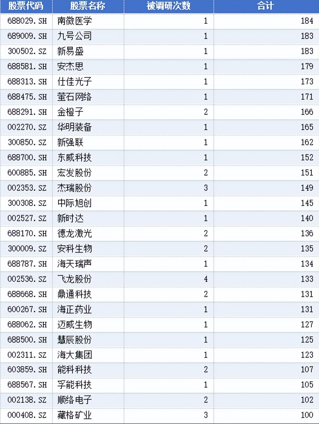 根据同花顺数据,近3个月以来,接受机构调研的上市公司有722家,被调研次数最少的为1次,最多的达11次,涉及机构数量过百。
