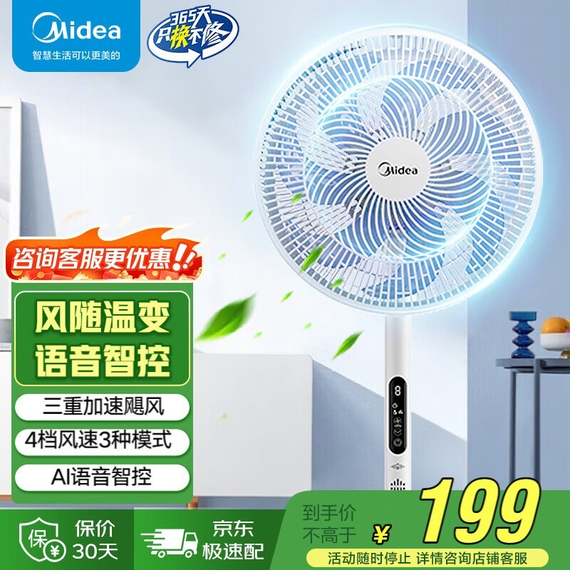 美的电风扇家用落地扇7叶遥控扇立式转页扇卧室摇头35AS限时特惠189元