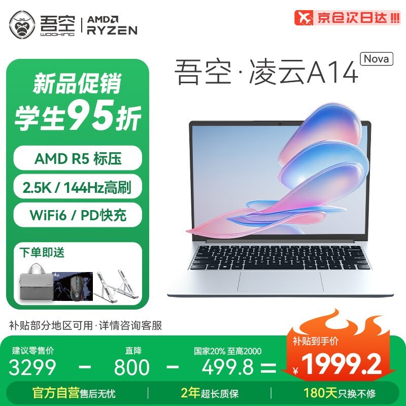 吾空凌云A14 Nova锐龙版R5笔记本京东优惠