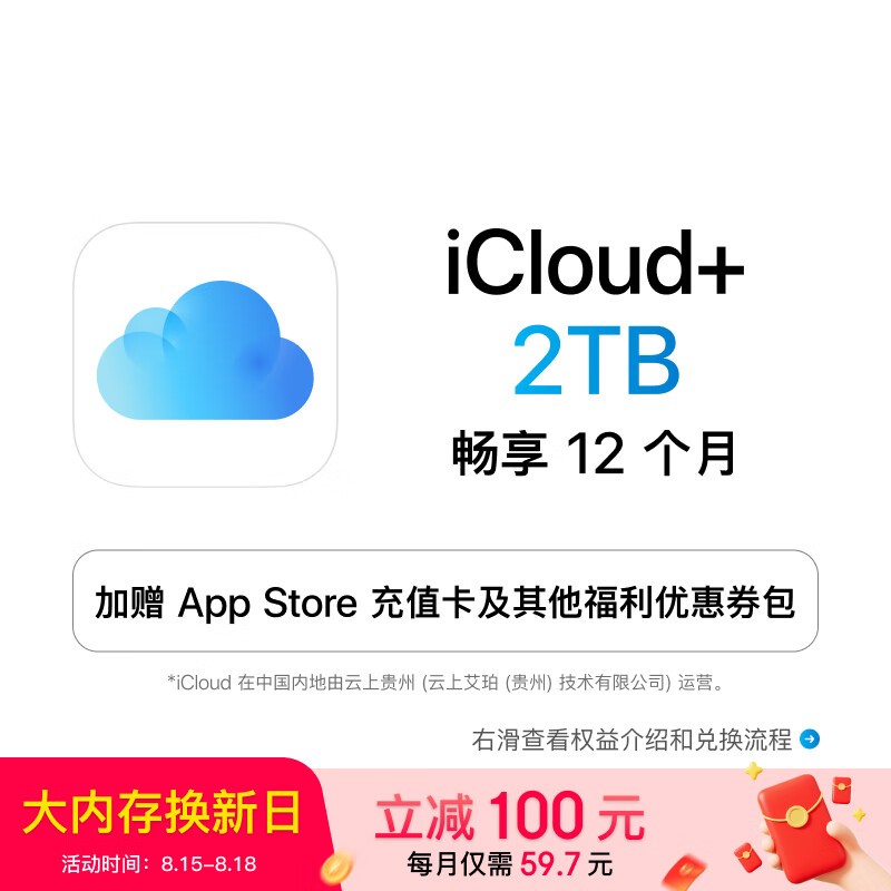 苹果iCloud+ 2TB 12个月权益包京东优惠价716元
