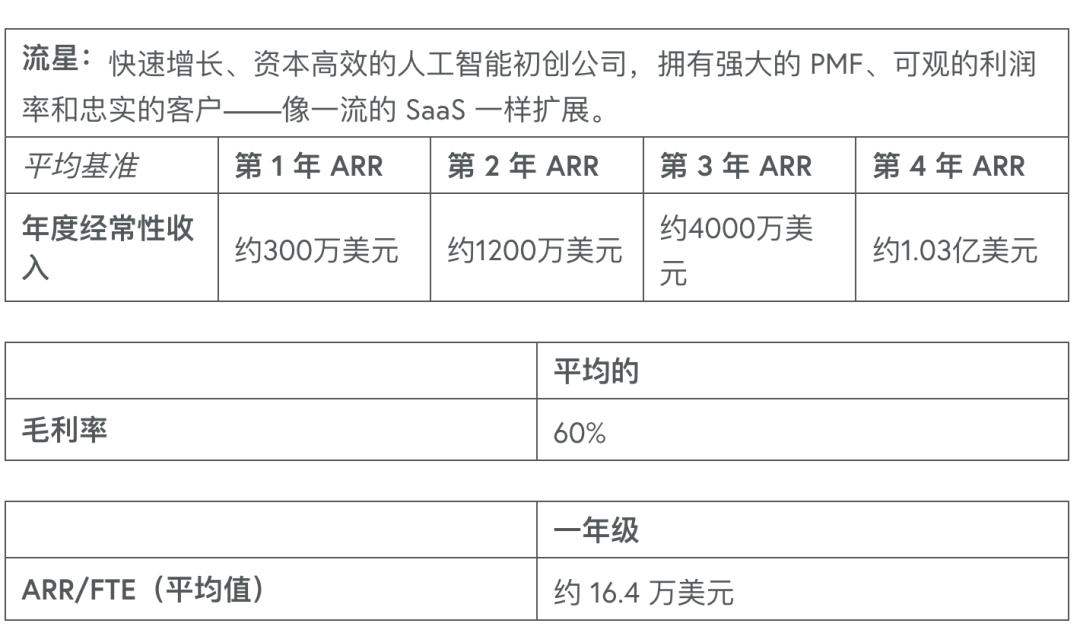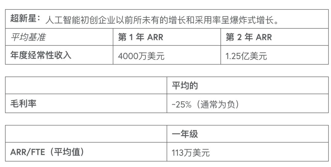 如果说2023年是人工智能的“爆炸元年”,那么2025年更像第一道破晓的曙光。经历了最初的喧嚣与混乱,行业的迷雾正在慢慢散去:基础公司开始集群化,AI 技术加速落地,初创企业的成功路径也逐渐显现。虽然距离真正的稳定还有一段距离,但眼下的格局,已经比任何时候都更清晰地勾勒出 AI 行业的未来走向。一个直接的观察窗口来自投资一线。就在不久前,国外知名投资机构 Bessemer 发布了《2025 年人工智能现状》一文,总结了他们对当下 AI 的观察。Bessemer 的名字,在 SaaS 圈里几乎是“金字招牌”。过去 10 年,它们投资了 200 多家 SaaS 企业,是这个领域最专业的机构之一。如今,SaaS 正成为 AI 技术最大的受益者,几乎所有传统 SaaS 公司都在全面融入AI。而Bessemer也在2023 年以来,向AI原生初创公司投资了超过10亿美元,也就是72亿人民币。在乌鸦君看来,再没有什么判断比真金白银的下注更有分量。也正因如此,这份报告格外值得关注。在这份报告里,Bessemer 不仅揭示了当下AI创业公司的两条典型增长路径,还分享了他们对各个细分领域的趋势判断,为我们理解2025年的AI行业提供了一份清晰的参照系。01 超新星和流星,AI公司的两种增长范式Bessemer分析了20家高速且可持续增长的 AI 初创公司,包括 Perplexity、Abridge、Cursor,发现如今的高速增长主要分为两类:超新星和流星。AI超新星这些初创公司往往在商业化的第一年,就能从种子轮融资一路冲到年收入1亿美元。这是软件行业前所未有的速度。它们既令人兴奋,也让竞争者感到不安。这种爆发式增长,常常发生在收入仍显脆弱的阶段:高速采用可能掩盖了低转换成本,或是源于一次足以颠覆市场的重大创新。这类应用离核心基础模型非常近,容易被贴上“薄包装”的标签;而在赢家通吃的赛道里,初创公司为了抢占先机,会不惜用价格和分销换市场,利润率因此常常接近零甚至为负。Bessemer调研的10家AI超新星,商业化首年平均就做到约4000万美元 ARR,第二年则跃升到 1.25 亿美元 ARR。但 ARR 本身并不代表业务健康——可持续增长还得靠留存率、用户参与度和资本效率。这些超新星的平均毛利率只有25%,但在人效上表现惊人:ARR/FTE 高达 113 万美元,是典型 SaaS 基准的 4–5 倍。这种收入效率,或许预示着它们在规模化后依然能保持极高的运营杠杆。AI流星相比之下,“流星公司”更像是一流的 SaaS:它们能在短时间内找到产品与市场的契合点,维系并拓展客户关系,同时保持健康的毛利率,虽然略低于 SaaS 同行,但换来的,是更快的增长和可控的成本结构。它们的增长依然比 SaaS 前辈更快,但速度受限于传统的组织扩张瓶颈。这些公司也许不会天天冲上新闻头条,却深受客户喜爱,且有潜力在软件史上留下浓墨重彩的一笔。平均来看,AI 流星在第一年就能做到300万美元 ARR,并实现四倍同比增长,毛利率约 60%,首年 ARR/FTE 达到 16.4 万美元。如果说 SaaS 时代的增长公式是T2D3(硅谷SaaS 高速增长公式,指公司进入规模化阶段,前两年每年增长三倍,后三年每年增长两倍),那么AI流星的节奏更接近Q2T3(前两年每年四倍,后三年每年增长三倍):增速明显快于传统 SaaS,但在运营模式上,依然沿用着 SaaS 的基准框架。Bessemer固然欣赏那些“一鸣惊人”的 AI 超新星,但真正定义这个时代的,可能不是少数异类,而是数以百计、持续高增长的 AI 流星。对于AI创始人来说,流星才是更值得追求的目标。02 AI步入第二阶段,定义问题比解决问题更重要OpenAI、Anthropic、Gemini、Llama、xAI等少数巨头继续主导基础模型赛道,在提升性能的同时加速垂直整合,不再只提供模型和开发工具,而是直接推出编码、电脑操作、MCP 集成等智能代理。计算成本在软件优化与端到端硬件创新的推动下可预测下降,Kimi、DeepSeek、Qwen、Mixtral、Llama 等开源模型依旧展现出强大竞争力,在效率与专用任务上甚至可比肩或超越专有模型。研究端同样涌现新成果:谷歌提出的“混合递归”方法,通过自适应深度平衡推理吞吐与小样本精度;混合专家(MoE)架构因新型专家组合方式而再受关注;测试时强化学习(RL)、自适应推理等技术加速落地,预计在垂直场景中带来重大突破。这些创新不仅在刷新模型能力,更在推动更大平台架构重构——涵盖模型、算力、训练框架、编排、可观测性等新型基础设施。堆栈参与者正跨界并购、打包产品,基础设施竞争进入“组合拳”阶段。AI行业正在进入第二阶段。AI 的第一阶段由算法突破驱动,比如反向传播、卷积网络、Transformer 等,成就了基础模型、算力和数据标注领域的巨头。但未来的第二阶段,将从“能解决问题”转向“定义并衡量问题”。正如 OpenAI 的姚舜宇所言:“人工智能的下半场,将从解决问题转向定义问题。”在第二阶段,大型实验室不再只追求基准测试的分数,而是构建能与真实世界有效交互的 AI。同时,企业应用也从POC(概念验证)走向生产部署阶段。所有这些转变都为新一波基础设施工具的涌现奠定了基础——它们不仅注重规模或效率,更致力于将人工智能融入运营环境、实际经验和持续学习。以下是一些示例:通过Fleet、Matrices、Mechanize、Kaizen、Vmax和Veris等平台进行强化学习环境和任务管理,因为人类生成的标记数据已不足以实现生产级人工智能;新颖的评估和反馈框架,例如Bigspin.ai、Kiln AI和Judgement Labs,可实现连续且具体的反馈循环;复合人工智能系统不