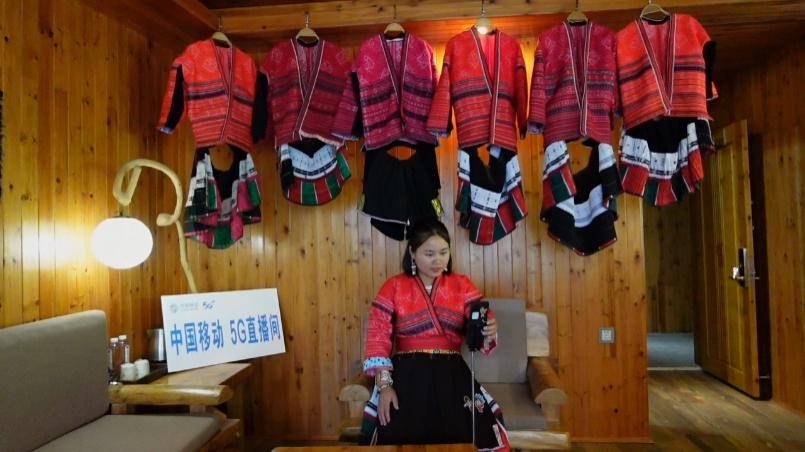 在“龙脊梯田”景区内的大寨村壮界组,舞燕虹雲酒店老板天刚亮就开启了线上直播,向人们展示晨雾中的梯田美景,不时回复粉丝的提问,手机屏幕上点赞、咨询预订的留言不断滚动。很难想象在偏僻山乡能有如此流畅的互动直播效果,而这完全得益于村里全覆盖的中国移动5G网络。