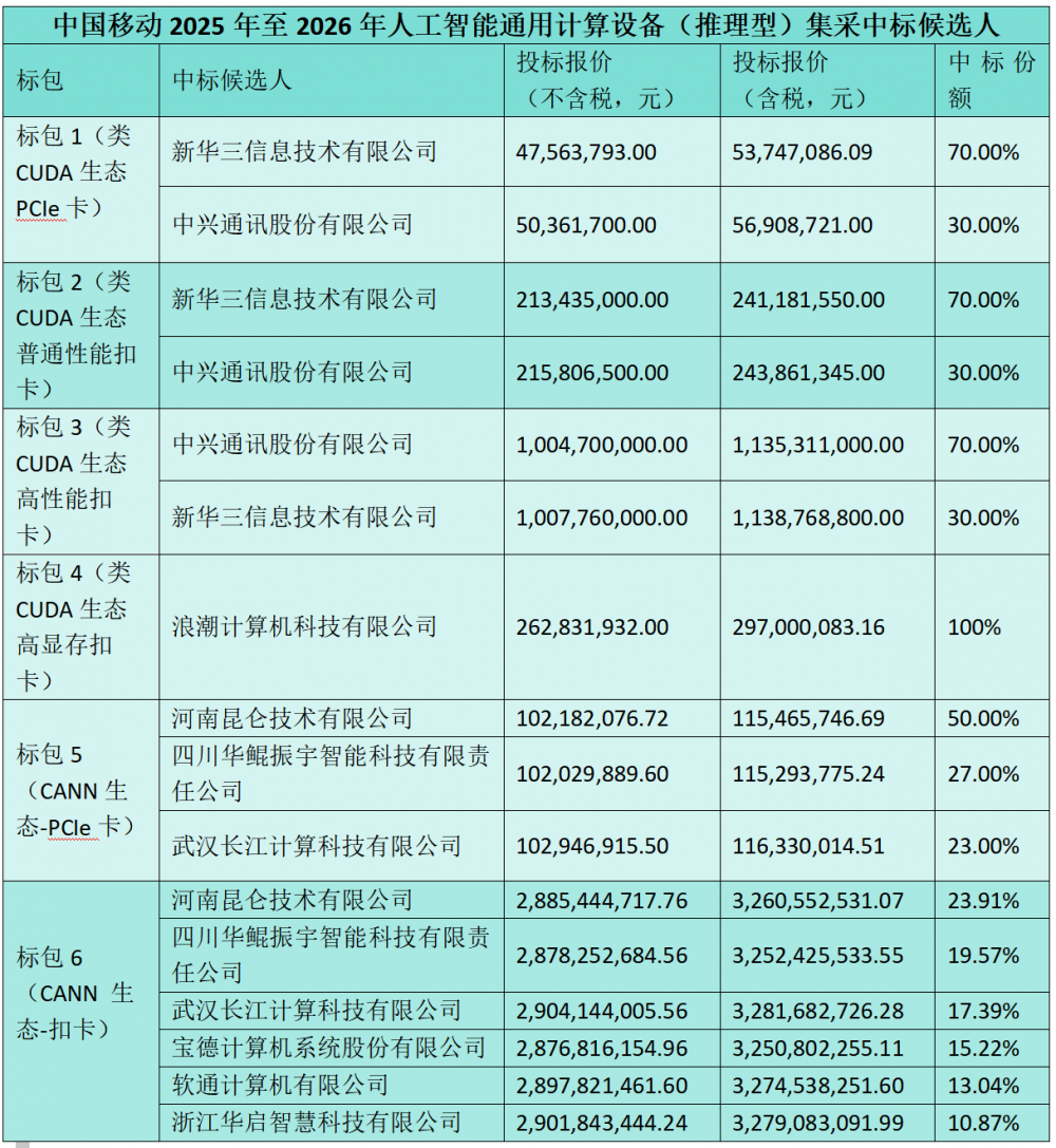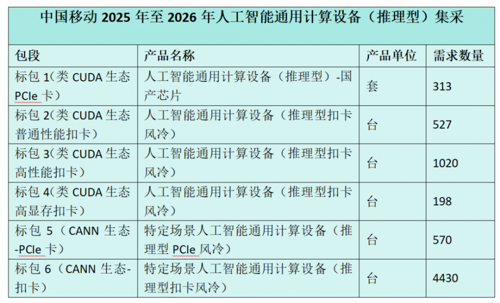据来自中国移动的官方信息显示,备受关注的中国移动2025年至2026年人工智能通用计算设备(推理型)集中采购项目已于日前结束。