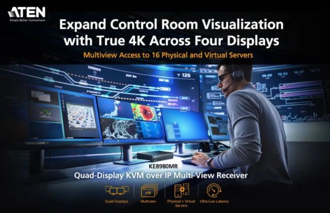 ATEN发布4K四屏KVM over IP多画面接收器,提升控制室可视化能力