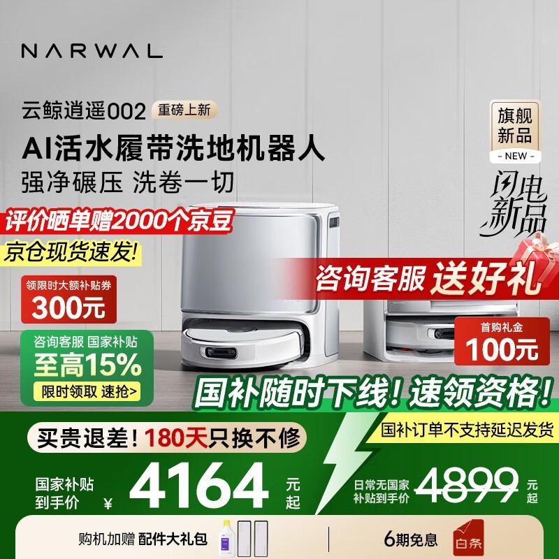 云鲸NARWAL逍遥002扫拖机,4399元超值入手