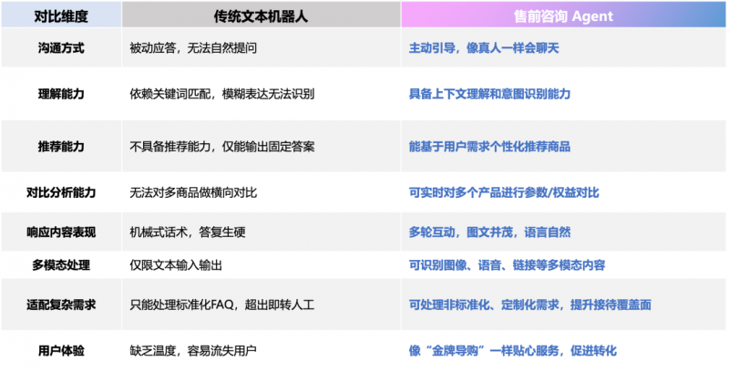 传统客服的核心诉求是“解答问题”,但在Agent加持下,服务的过程本身就可以是用户需求挖掘、产品推荐和决策引导的过程。
