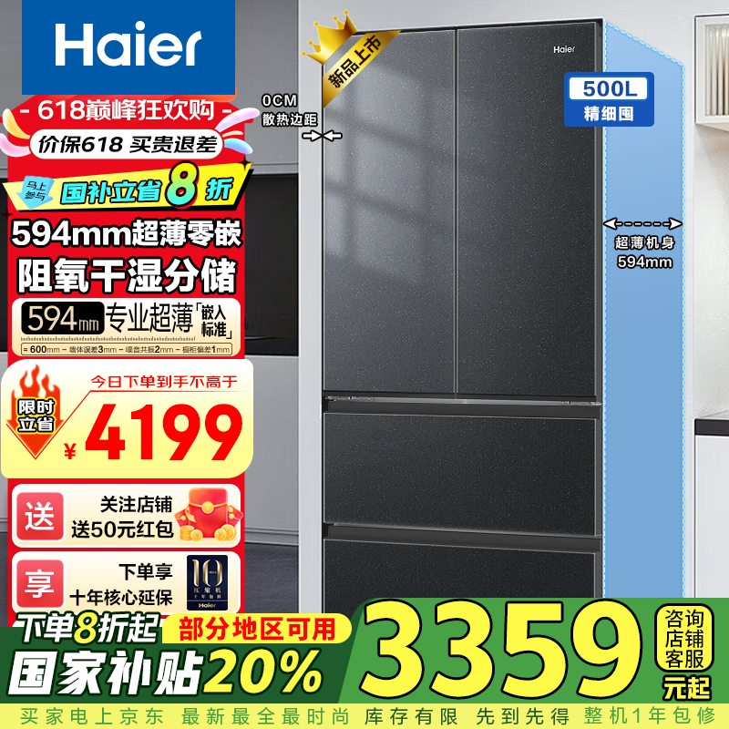海尔BCD - 500WGHFDB5X8U1冰箱到手价3273元