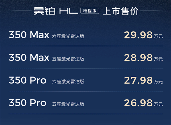 快科技8月19日消息,今晚,广汽发布“星源增程”技术,昊铂HL增程版上首发搭载,后者同步上市,共推出4款车型,售价区间为26.98-29.98万元。