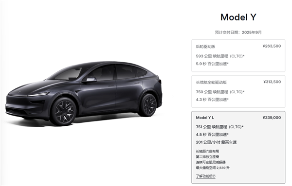 YL 算是 Model Y 的一个顶配版本,定价 339000 元,比长续航四驱的 Model Y 多了 2.55 万。