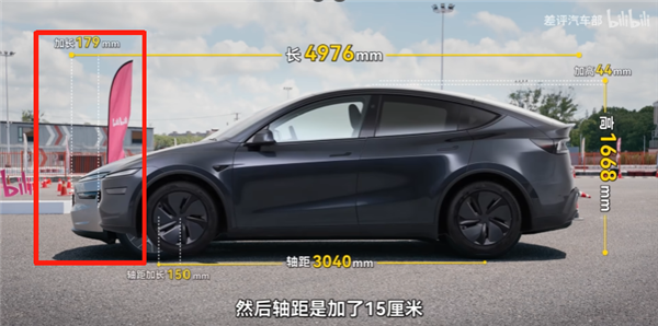 我们把两台车叠在一起就能看出 YL 长了多少。