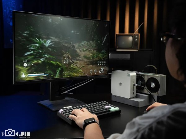 所以这个外接显卡拓展坞,是以一种不怎么需要动手的方式,大幅提升了迷你主机的性能。在空间占用不大的情况下,让你畅玩 3A 游戏,并且还能完成一些生产力方面的工作。