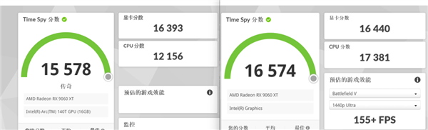 左边为显卡坞成绩,右边为PC成绩
