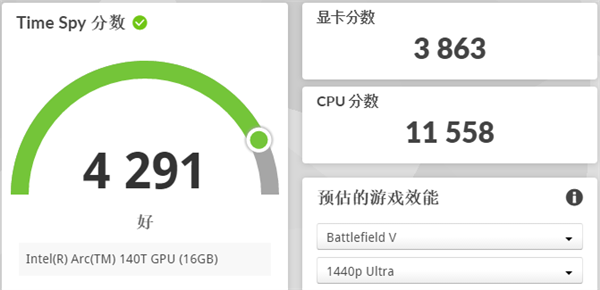 而在衡量 GPU 性能的 3DMark Time Spy 中,285H 跑出了显卡分 3863 的成绩,这个提升幅度就没那么多了。