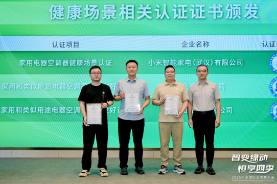 获得产品证书的企业(排名不分先后):珠海格力电器股份有限公司、青岛海尔空调器有限总公司、TCL空调器(中山)有限公司、小米智能家电(武汉)有限公司、海信空调有限公司、广东美的暖通设备有限公司、广东美博制冷设备有限公司、广东美的制冷设备有限公司、奥克斯空调股份有限公司、美邦(广东)电器有限公司、安徽恩博力电器有限公司、浙江夏宝电器有限公司、创维空调科技(安徽)有限公司。