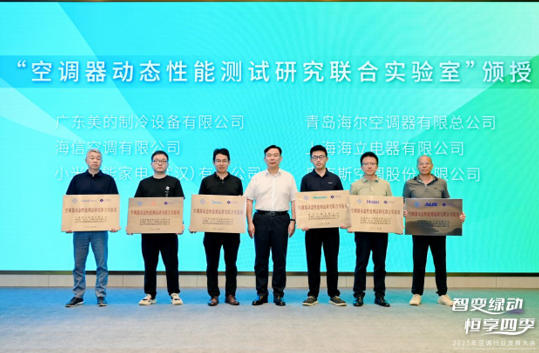 为进一步推进新国标验证与技术交流,中国家用电器研究院先后为美的、海信、小米、海尔、海立、奥克斯的焓差室升级了动态测试功能并开展大量数据比对工作。本次会议还为首批服务于新国标方法验证测试和支撑节能创新型空调产品研发的“空调器动态性能测试研究联合实验室”进行授牌。他们是:广东美的制冷设备有限公司,海信空调有限公司,小米智能家电(武汉)有限公司,青岛海尔空调器有限总公司,上海海立电器有限公司,奥克斯空调股份有限公司。联合实验室将加速动态测试技术突破,为行业节能创新型产品研发提供关键支撑。