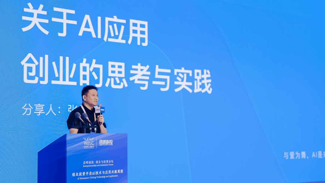 在本次论坛上,与爱为舞创始人兼首席执行官张怀亭以《关于 AI 应用创业的思考与实践》为题发表了演讲。