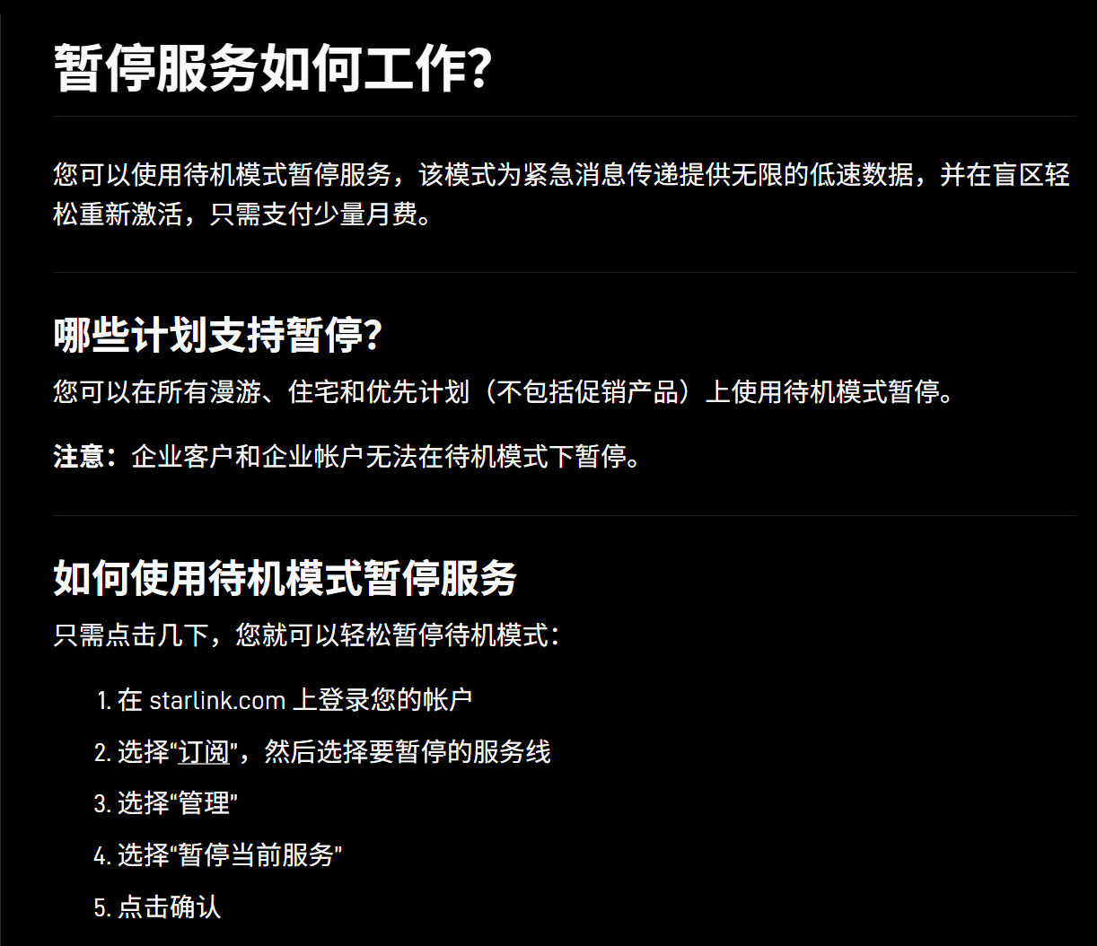 更重要的是,SpaceX关于待机模式的服务条款中明确指出:“若客户连续使用待机模式超过12个月,SpaceX有权:(i)要求其支付额外费用或升级至其他服务套餐;或(ii)仅允许其连接互联网以访问星链账户页面。”