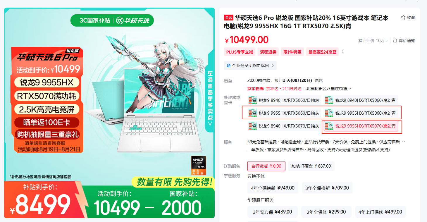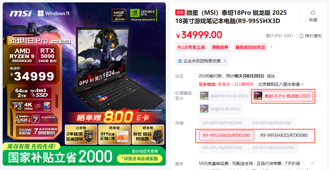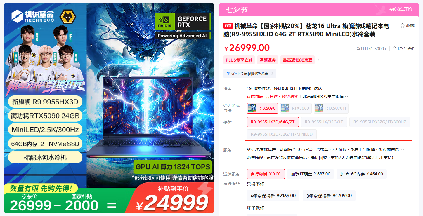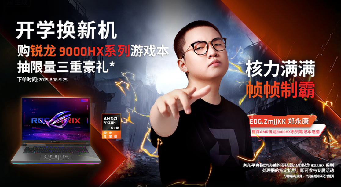 而对于8.18~9.25日期间购买最新锐龙9000HX系列游戏本的同学,更有限量的三重豪礼相赠,可谓绝佳的专属福利,最高有额外的2000元京东E卡等你来拿!后面将对此次“开学换新机”活动中的锐龙9000HX系列机型各自的优势逐一盘点,以帮助大家优选适合自己的机型。