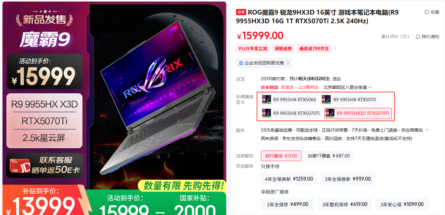 ROG魔霸9系列机型共有4款参与活动,魔霸9系列作为游戏本市场里的常青树,此次搭载的处理器最高是有着游戏本处理器一哥之称的锐龙9 9955HX3D,创新的Zen 5架构和领先的4nm工艺,拥有16超大核心32线程,144MB高速缓存,支持AMD第二代3D V-Cache技术,无论电竞网游还是3A大作全都轻松拿捏。魔霸9系列的处理器分为锐龙9 9955HX,还有锐龙9 9955HX3D,独立显卡分为RTX 5060、RTX 5070、RTX 5070Ti。屏幕均为2.5K星云屏,冰川散热架构也升级到了3.0,性能、品质和口碑都属于上佳之选。