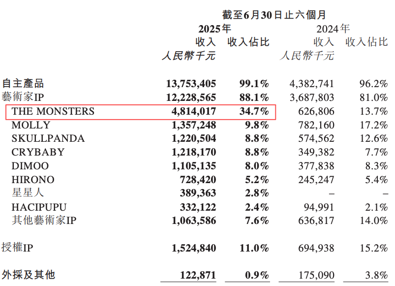 THE MONSTERS的48.14亿元收入几乎都是靠Labubu获得的。