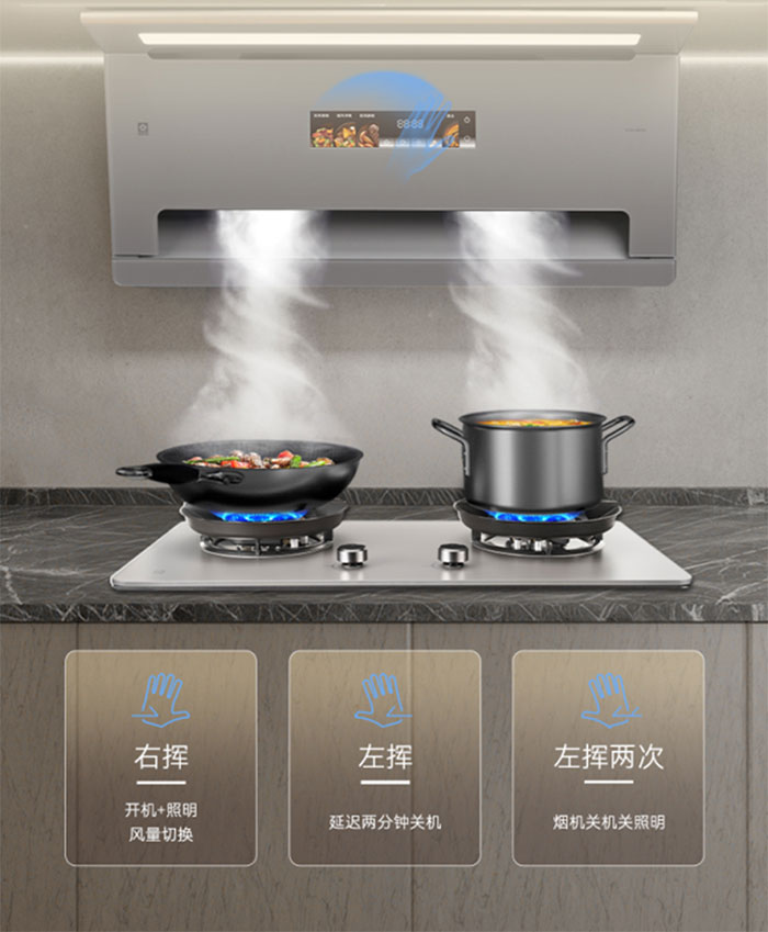 科技的魅力,在于让生活更便捷。樱花御风吸油烟机SCR-Q660M 配备智能体感操控,无需触碰面板,轻轻一挥便可下达指令,风随手起,让烹饪的每个瞬间都从容不迫。