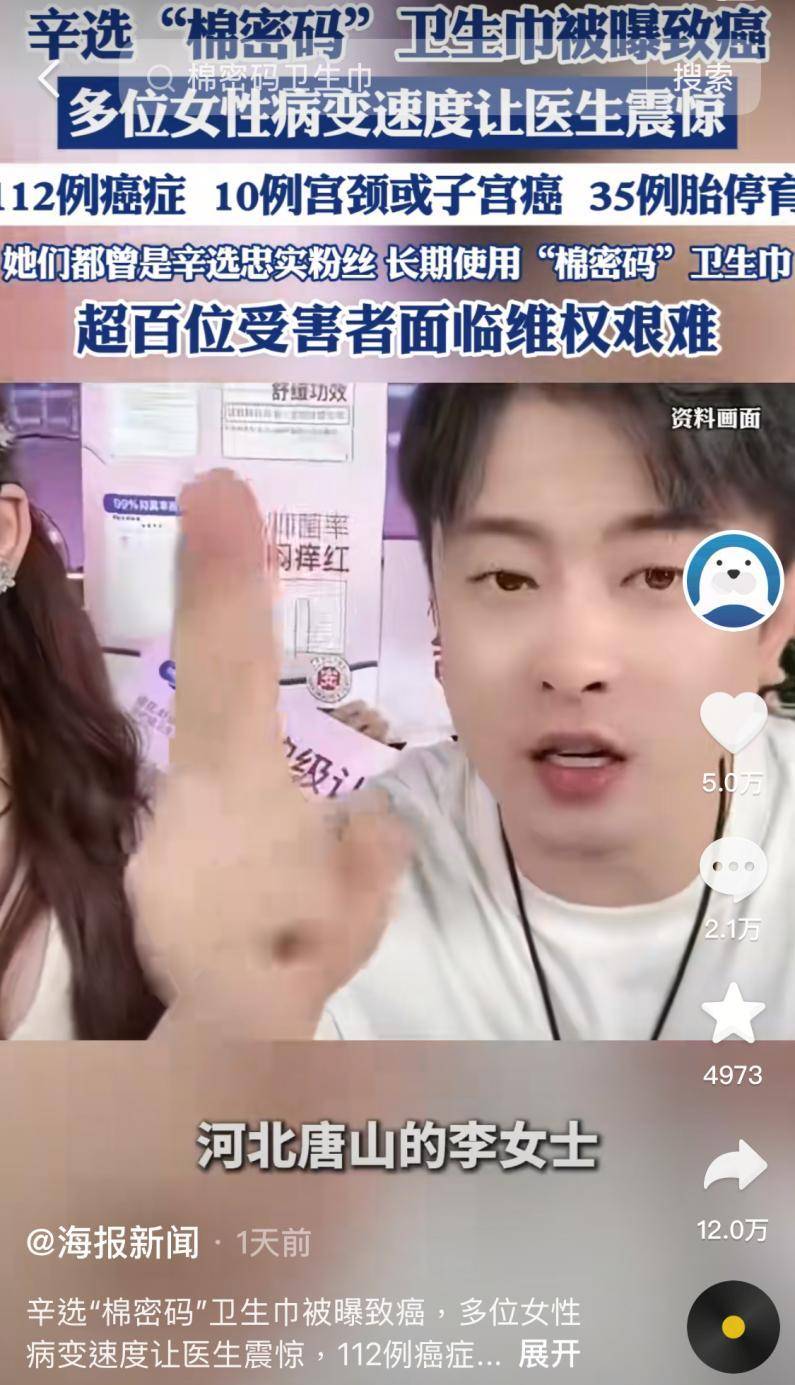 但是,很多头部主播在大把收入进账的同时,却忽视了对消费者的责任,缺乏对自营品牌商品的品质监管,将风险转嫁给了消费者。近期,“棉密码”卫生巾就因被曝出含有致癌物硫脲,引发了消费者的集体投诉。