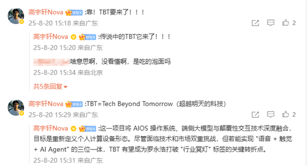 不过,也有数码博主在下方评论称:TBT全称Tech Beyond Tomorrow(超越明天的科技)。