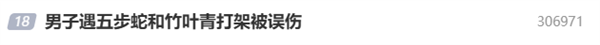 快科技8月21日消息,今日,词条#男子遇五步蛇和竹叶青打架被误伤#登上微博热搜,引发网友热议。