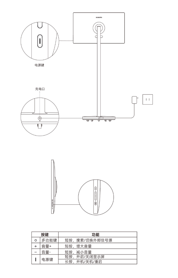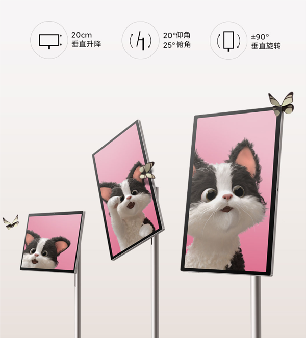 小米智能家庭屏Max 27底部配备5个隐藏式静音万向轮,支架支持旋转、倾斜和升降。