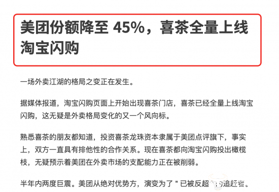 最近外卖圈有个事儿,估计很多人都看到了,那就是茶饮行业的明星品牌喜茶全量上线淘宝闪购了。为啥说这事释放的信号不简单呢?
